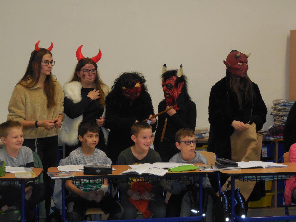 5. prosince 2019 v dopoledních hodinách navštívilo naši školu nebeské a pekelné poselstvo pod vedením Mikuláše a předalo dětem nadílku.